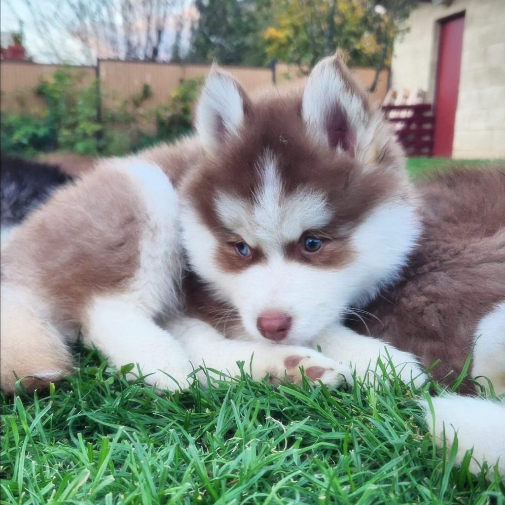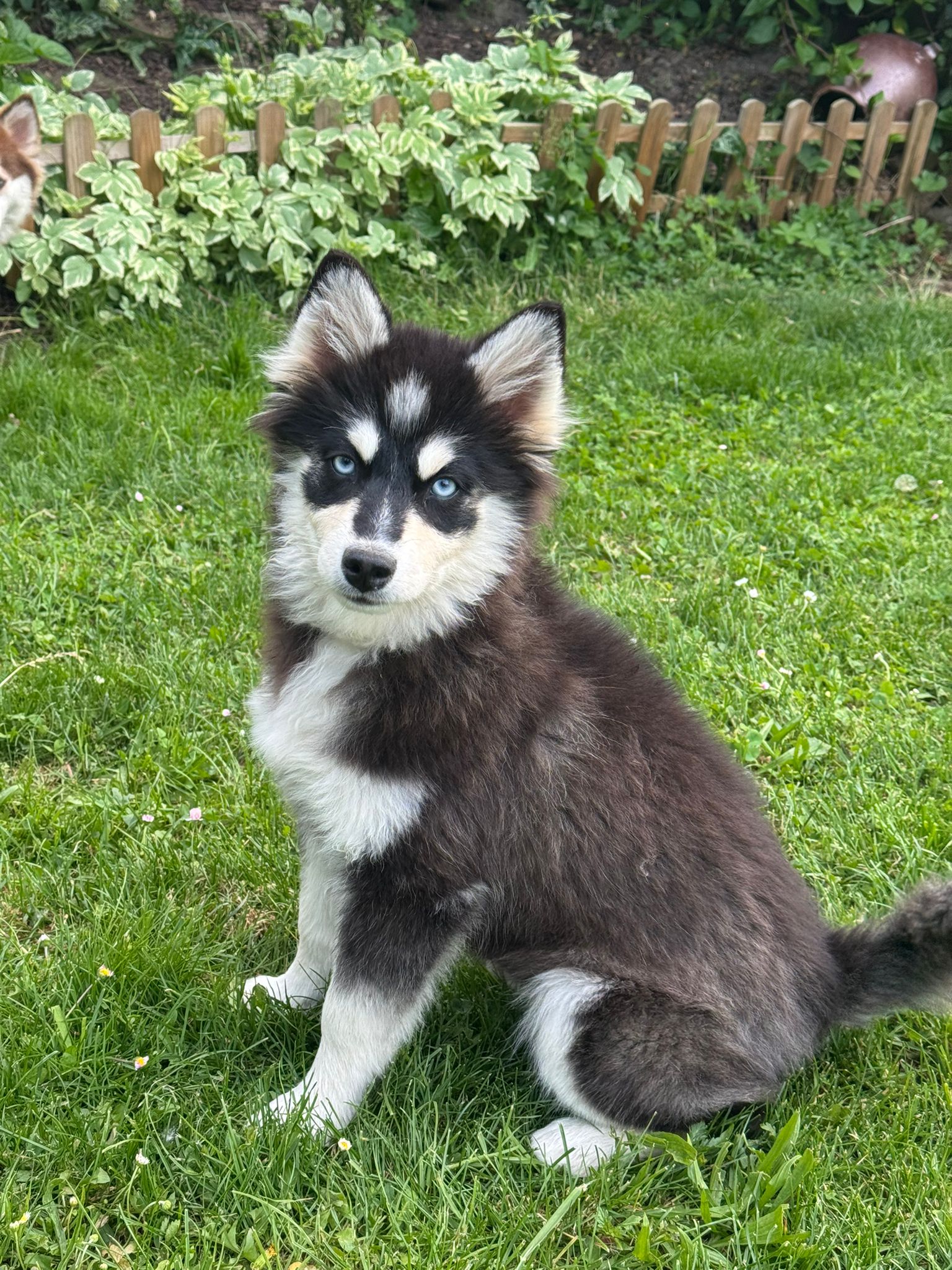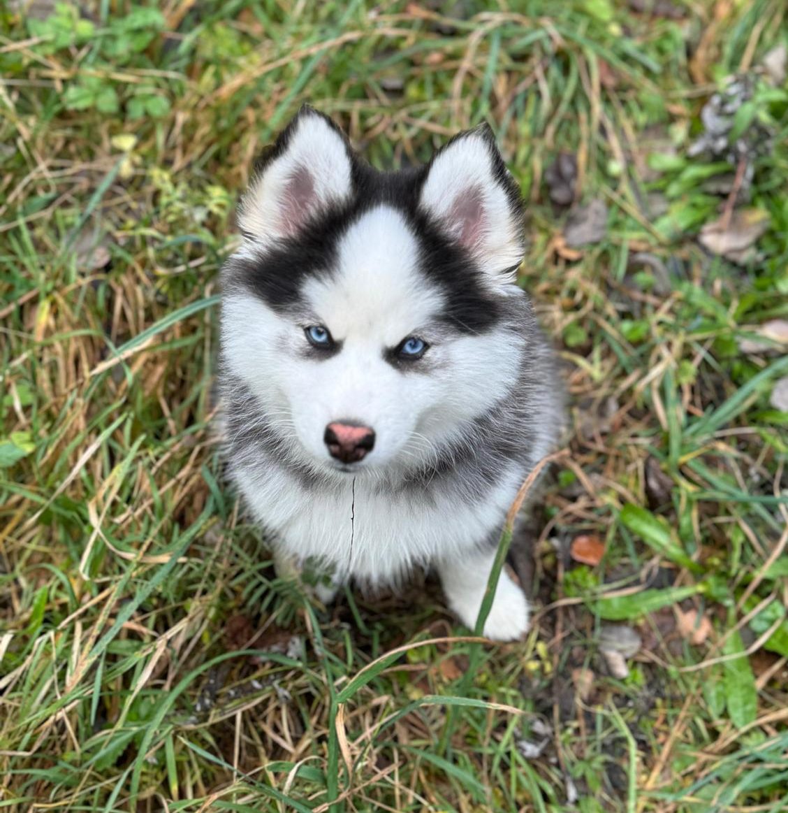Yumiko est une Pomsky de génération F2b qui vient d’une splendide lignée russe. Notre petite louve ressemble à un Husky miniature avec ses magnifiques yeux bleus et son pelage polaire gris bleuté. Elle est de taille standard ; 12 kg pour 45cm au garot. Yumiko est une Pomsky pleine de vie, intelligente et très sociable.