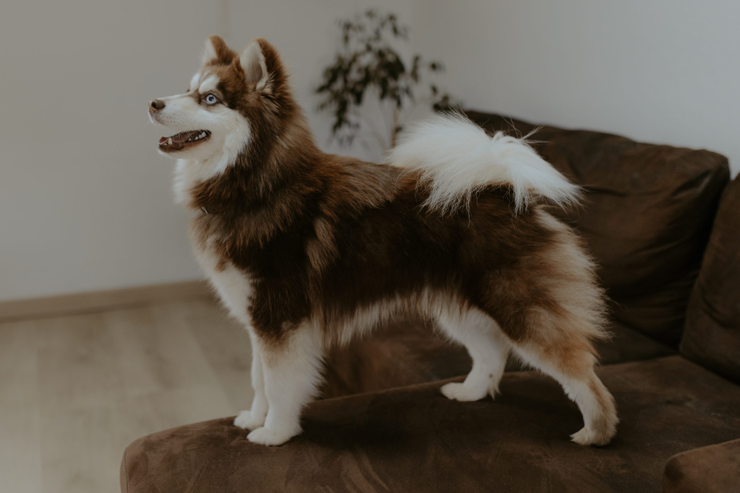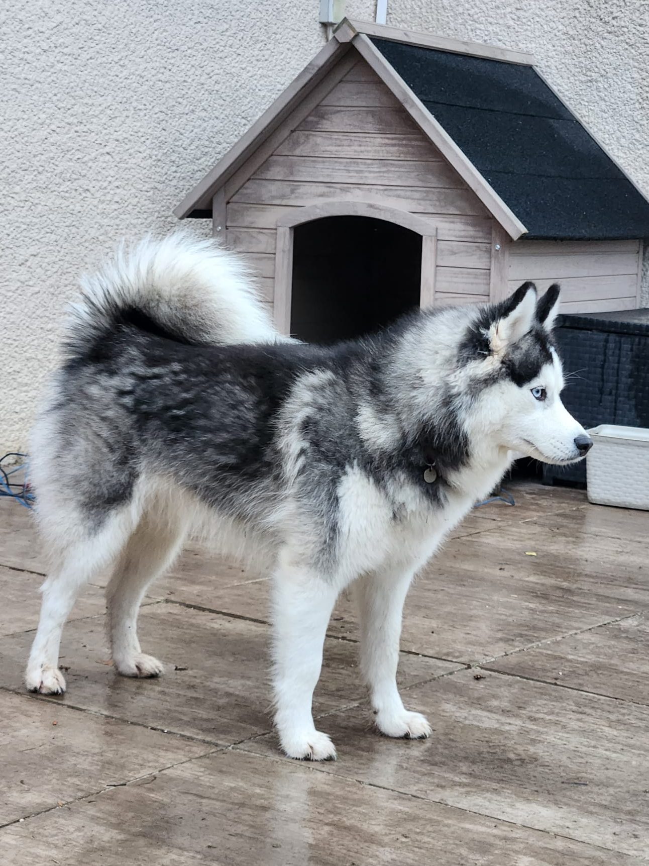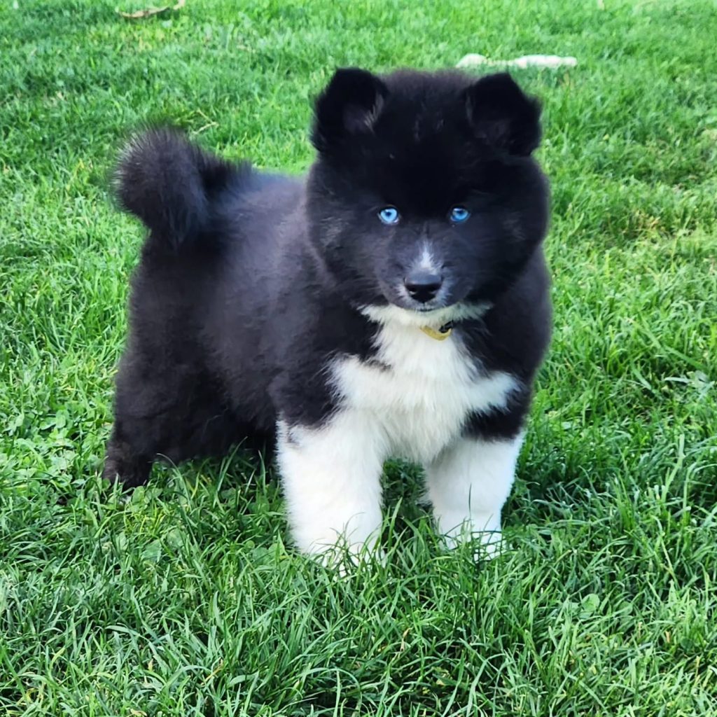 Yumiko est une Pomsky de génération F2b qui vient d’une splendide lignée russe. Notre petite louve ressemble à un Husky miniature avec ses magnifiques yeux bleus et son pelage polaire gris bleuté. Elle est de taille standard ; 12 kg pour 45cm au garot. Yumiko est une Pomsky pleine de vie, intelligente et très sociable.